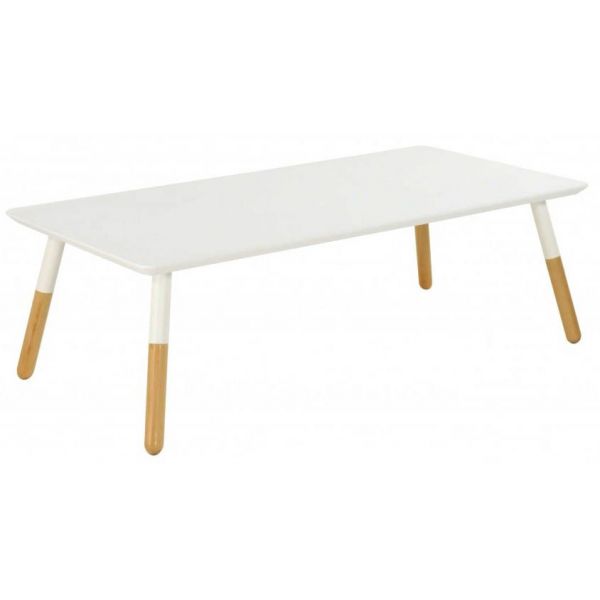 Images. Table basse scandinave blanche avec pieds bois leena. Cette table basse blanche laquée matte rectangulaire offre un visuel attrayant de par ses décors en bois massif chêne sauvage.